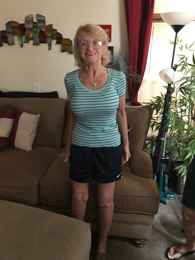 I’ve been texting with Angelo this week. He sent me another picture and gave me permission to share it and their story. It’s of Linda at home, fully dressed, standing on her own and showing off her pearly whites. “This is the first time in three years that she has been able to stand by herself,” he wrote. “With God all things are possible.”